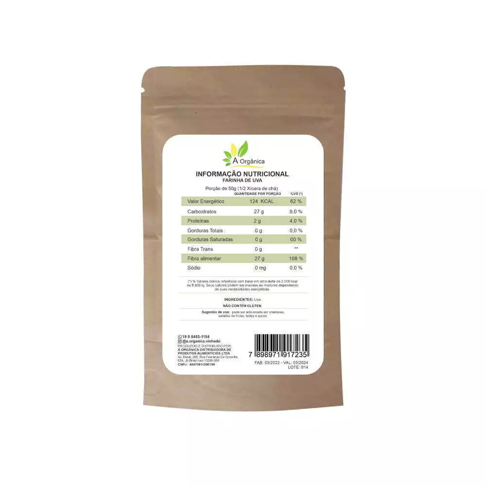 A Farinha de Uva Rica em Fibras é uma excelente fonte de antioxidantes, vitaminas e fibras naturais, obtida a partir das cascas e sementes da uva. Este superalimento funcional é perfeito para enriquecer sua dieta, ajudando na saúde intestinal, no controle do colesterol e no combate aos radicais livres. Com sabor suave e levemente adocicado, é uma alternativa saudável e versátil para diversas receitas.