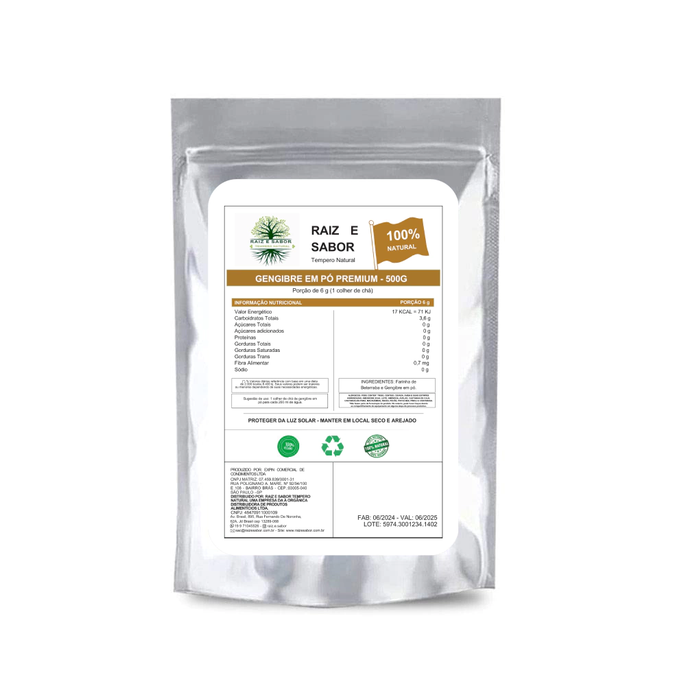 O gengibre em pó é um tempero versátil, conhecido por seu sabor picante e propriedades benéficas à saúde. Utilizado em receitas doces e salgadas, ele oferece uma explosão de sabor e é uma excelente opção para quem busca dar um toque especial às refeições, além de aproveitar suas propriedades anti-inflamatórias e digestivas.