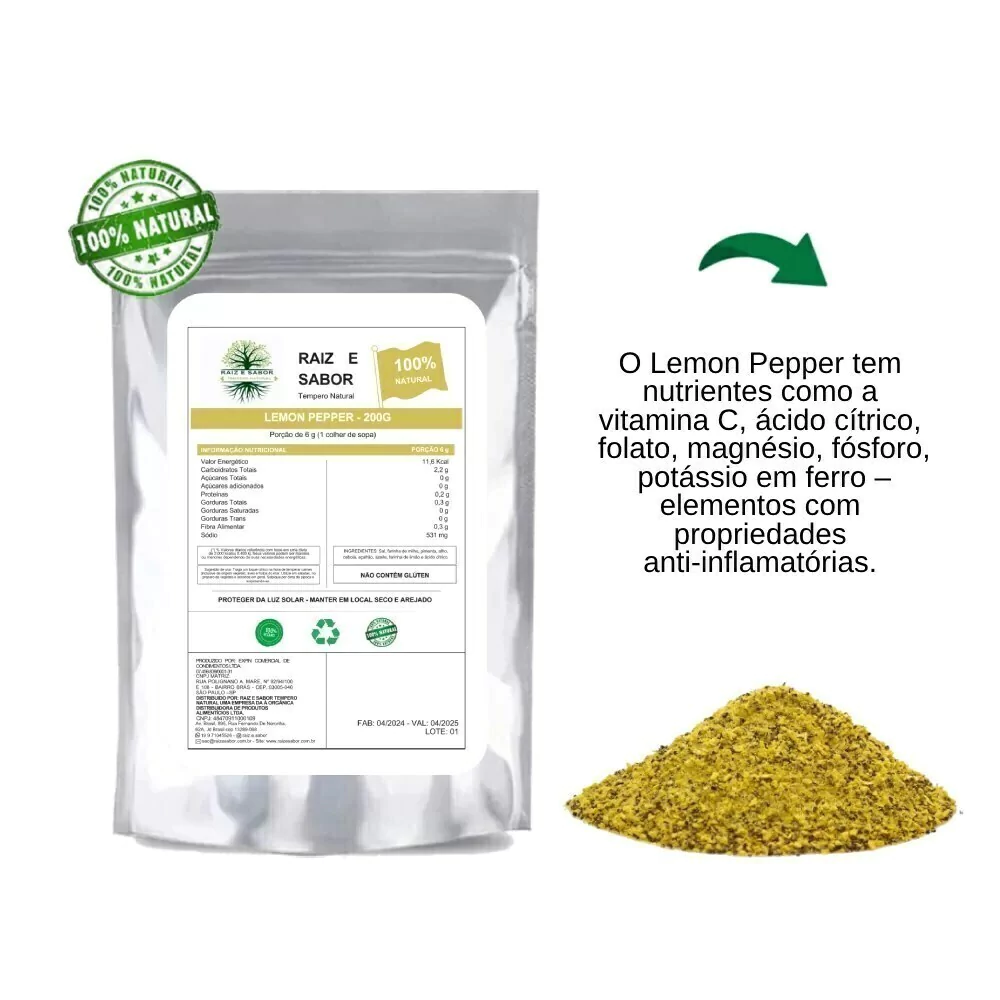 Desfrute do frescor cítrico e da picância sutil do nosso Lemon Pepper! Este tempero exclusivo combina a acidez refrescante do limão com o calor suave da pimenta, criando uma explosão de sabor em cada prato. Perfeito para avivar carnes grelhadas, peixes, saladas, legumes e muito mais, o nosso Lemon Pepper eleva o seu paladar a novos patamares de satisfação gastronômica. Experimente hoje mesmo e descubra como este tempero versátil pode transformar suas refeições com um toque de brilho e sabor vibrante!