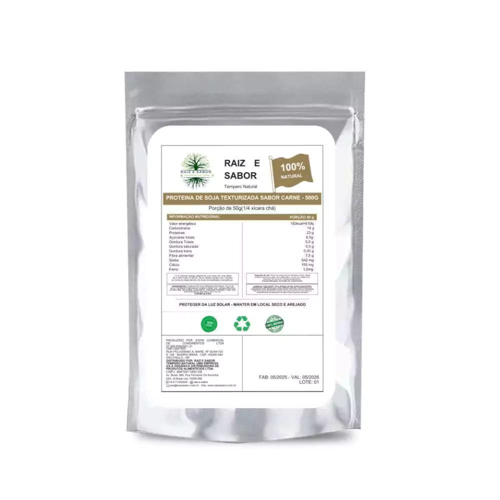 Proteína de Soja Texturizada Sabor Carne – Raiz e Sabor