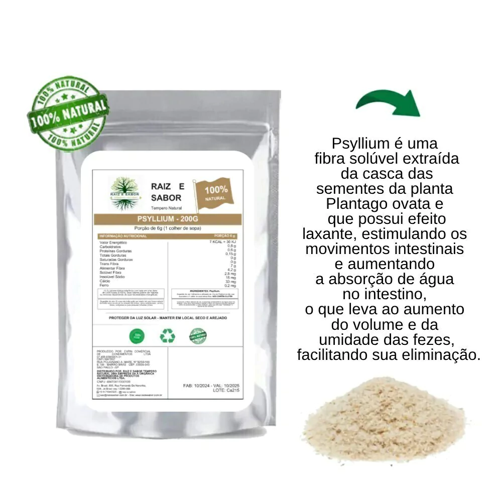 O psyllium em pó é uma fibra natural poderosa, extraída da casca da semente da planta Plantago ovata. Reconhecido por sua capacidade de auxiliar no bom funcionamento do sistema digestivo, o psyllium ajuda a regular o trânsito intestinal e a promover a sensação de saciedade, sendo um excelente aliado em dietas para controle de peso. Além disso, contribui para a saúde do coração, pois auxilia na redução dos níveis de colesterol.