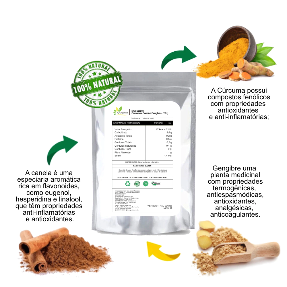 Adoce sua rotina matinal com nosso Shot de Cúrcuma, Canela e Gengibre. Sinta a diferença e embarque em um caminho mais saudável, todos os dias!